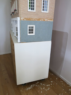 In 2014 heb ik nog de buitenkant van het poppenhuis gerenoveerd, want er waren gedeeltes die zó verkleurd waren door de roetaanslag, dat het tijd werd voor een opknapbeurt.