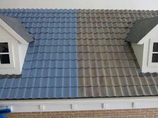 Ook het dak kreeg eindelijk een natuurlijker aanzien, door eens lekker te kliederen met verschillende kleuren verf.